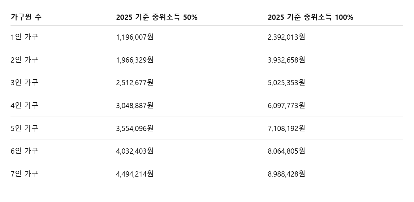 2. 가구 소득 기준 (2025년 기준 중위소득)