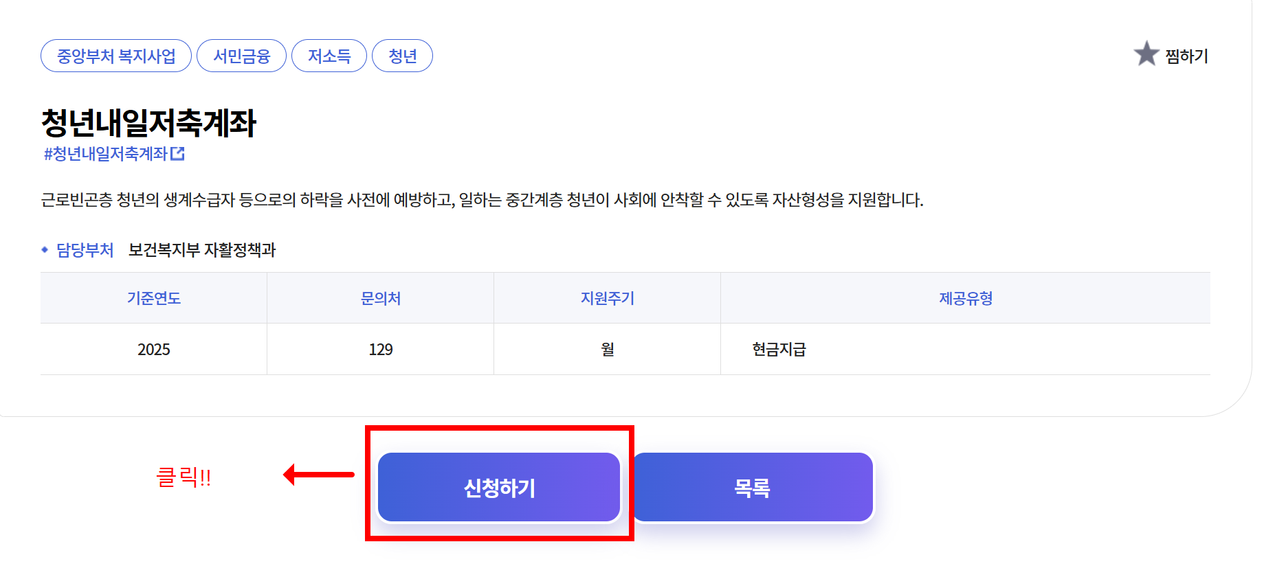 ※ 청년내일저축계좌와 헷갈리기 쉬우니, 반드시 신청 전 본인이 어떤 계좌에 해당되는지 확인하세요.