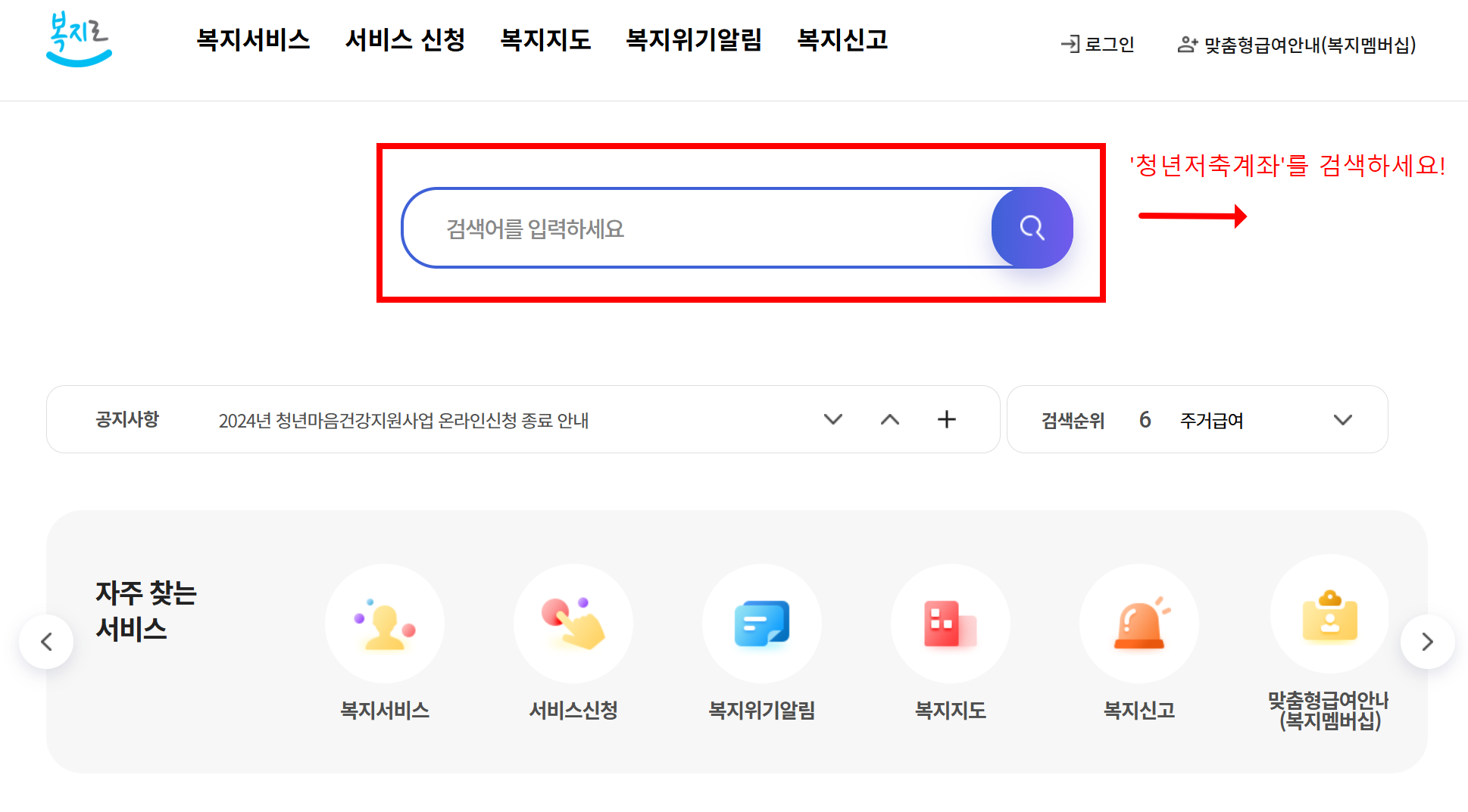 - 복지로 홈페이지 접속 (www.bokjiro.go.kr)
